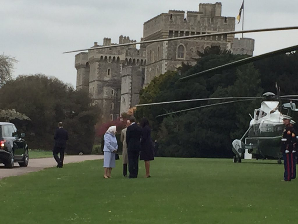 If you thought the highly-trained, super protective Secret Service were going to be dropping Barack and Michelle Obama off for lunch with the Queen and Prince Philip, you were wrong. Phil and Liz met FLOTUS and POTUS from their helicopter and drove up to Windsor Castle with Barack riding shotgun.
